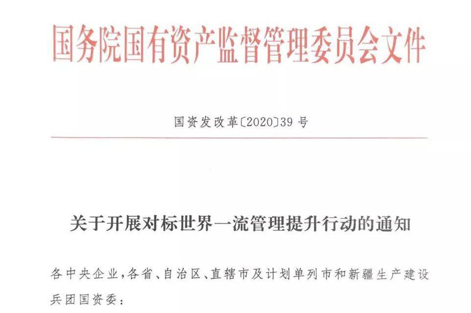 国资委推进国有重点企业对标世界一流管理提升行动新华社北京8月25日电(记者王希)记者从国务院国资委了解到,国资委近日启动国有重点企业对标世界一流管理提升行动,对加强企业管理体系和管理能力建设作出部署安排...